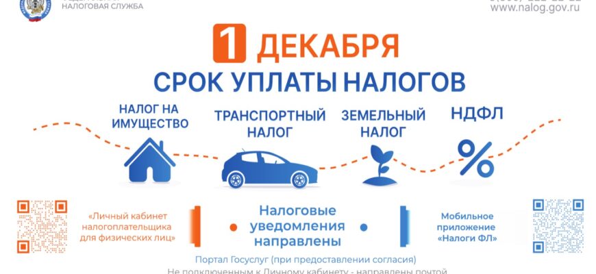 Управление ФНС России по Ростовской области напоминает, что срок уплаты транспортного, земельного налогов, налога на имущество физических лиц и налога на доходы физических лиц, не удержанного налоговым агентом, за 2024 год истекает 1 декабря 2025 года.