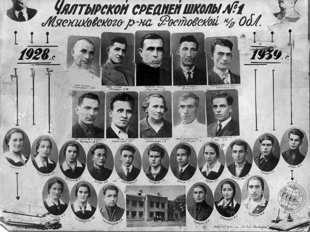 Итак, к 1935 году в Чалтыре были ШКМ (школа крестьянской молодежи, ныне старое здание школы №2 на 5-ой линии), школы около моста на улице Мясникяна и на Золотой горе (в войну попала под бомбежку).
