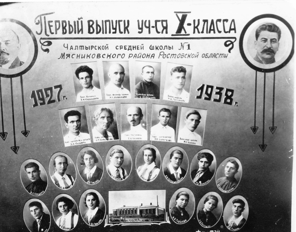 В 1938-1939 учебном году в школе было пять восьмых классов, два девятых и один десятый, где учились 17 человек. Это был один из самых сильных выпусков, четыре человека получили аттестаты с отличием. Один из них Карапет Киракосович Атоян.