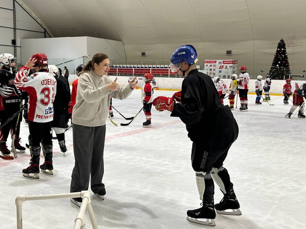 На первом занятии дети под руководством тренера и тьюторов учились технике передвижения на льду. Атмосфера была дружелюбной, что помогло детям полностью раскрыться и довериться наставникам.