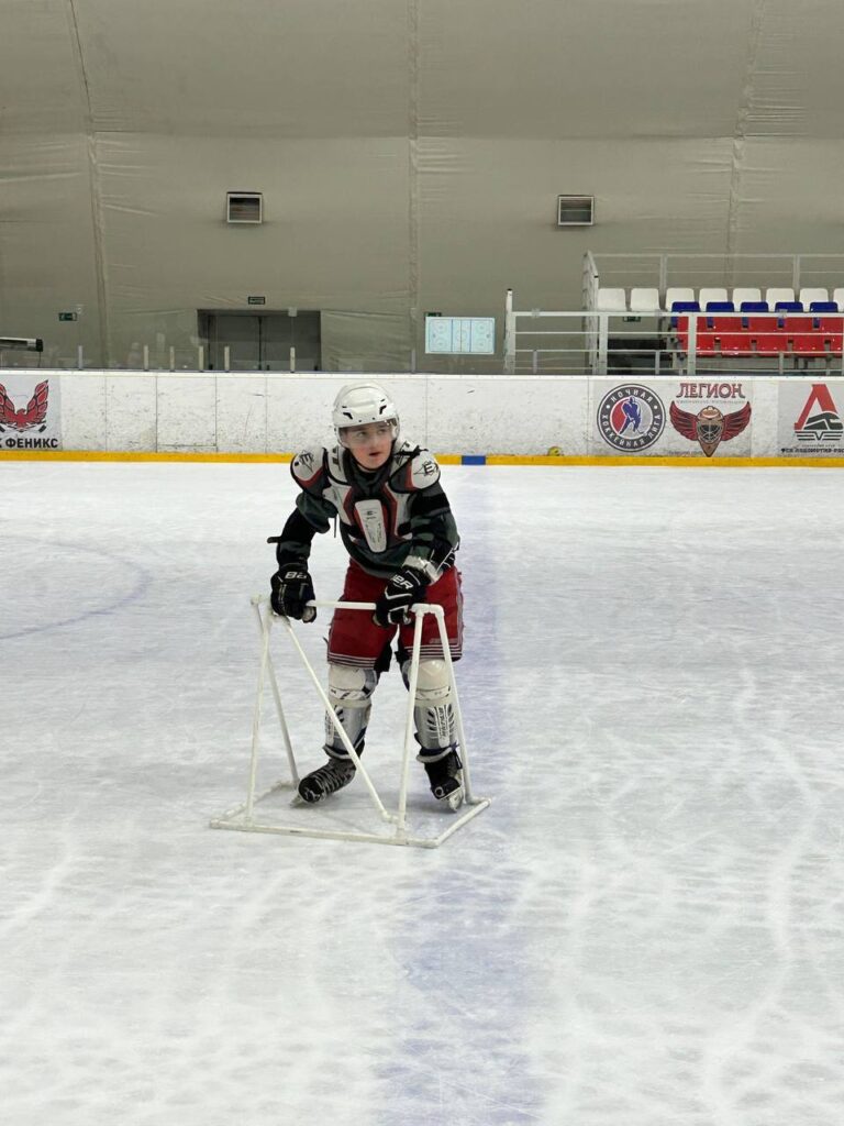 После часовой ледовой тренировки, с небольшим перерывом, состоялось второе занятие, посвящённое общей физической подготовке (ОФП). Ребята выполняли упражнения, направленные на укрепление мышц ног и рук. Программа ОФП специально адаптирована для детей с ограниченными возможностями здоровья (ОВЗ), учитывая их особенности.