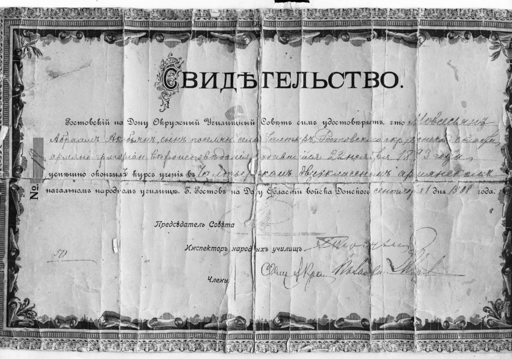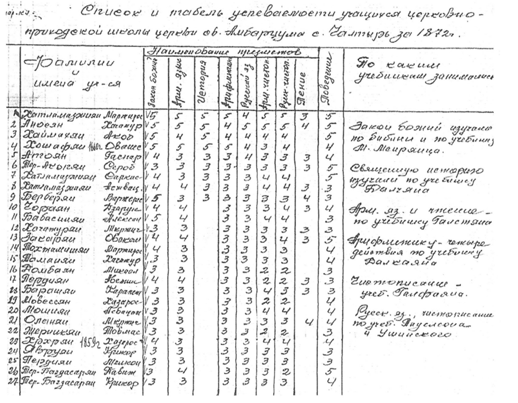Есть список учащихся Халибовского армянского училища (г. Феодосия) 1858 г., где из 150 учащихся сорок (38 процентов) были из Нор- Нахичевана. Среди них и юноши из Чалтыря — Грикор Бардахчиян, Степанос Бардахчян, Манук Пешекерян, Серовбе Табахян (Дабахян Сероп).