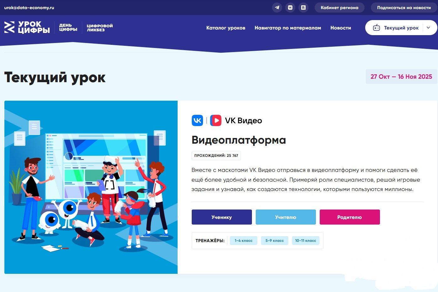 27 октября по все стране для школьников стартует новый урок в рамках всероссийского образовательного проекта «Урок цифры» по теме «Видеоплатформа».