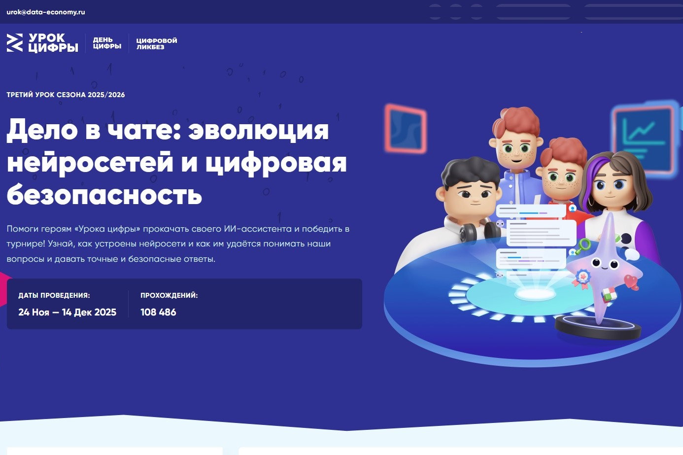 Проект «Урок цифры» реализуется Минцифры, Минпросвещения и АНО «Цифровая экономика» совместно с ведущими технологическими компаниями в поддержку национального проекта «Экономика данных и цифровая трансформация государства».