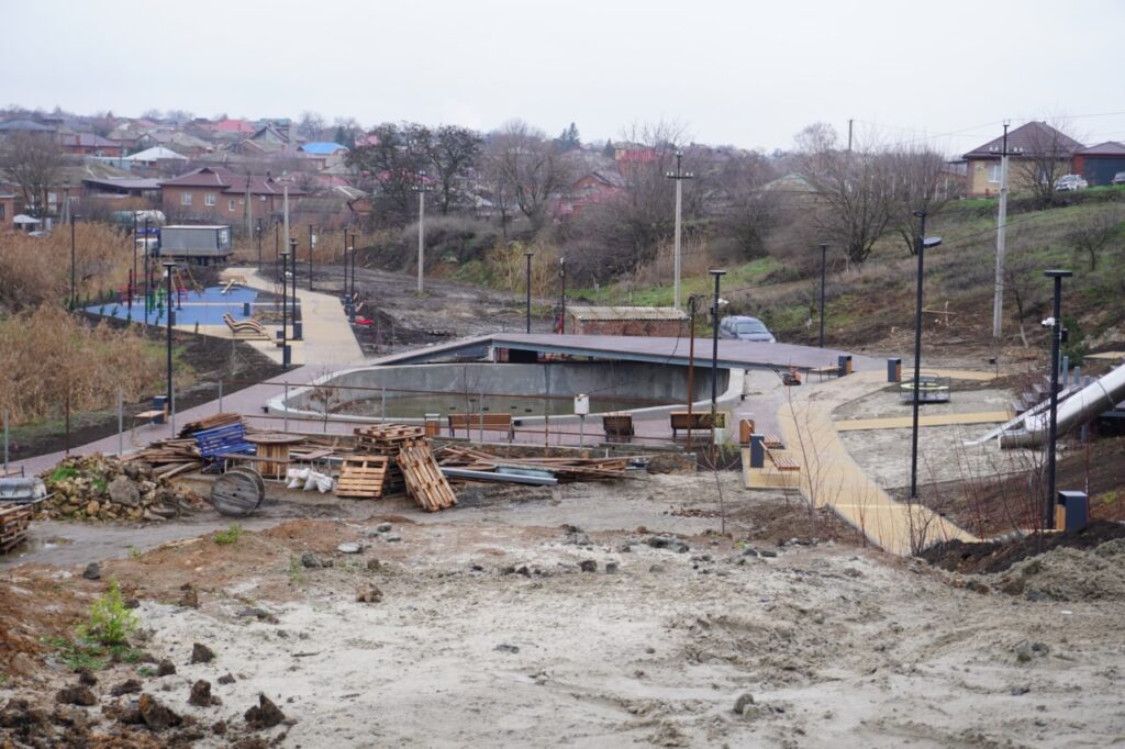 Кроме того группа губернаторского контроля осмотрела ряд других объектов. В их числе полностью благоустроенный родник Хазах-Чорвах в селе Чалтырь (на снимке), оснащённый освещением и спортивно-игровым оборудованием, в хуторе Ленинаван — новый модульный детский сад на 300 мест, открытие которого запланировано на 2026 год, универсальная спортивная площадка, а также парк имени 80-летия Победы, где работы по благоустройству уже завершены.