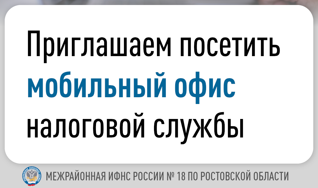 Межрайоная ИФНС России № 18 по Ростовской области приглашает посетить мобильный офис налоговой службы
