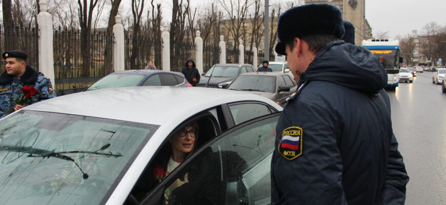 В канун Международного женского дня лучшие мужчины ГУФССП России по Ростовской области совместно с сотрудниками Госавтоинспекции в рамках реализации совместных рейдовых мероприятий поздравили женщин с 8-м марта, вручив красные розы с наилучшими пожеланиями. В рамках акции судебные приставы предложили женщинам прямо за рулем узнать о наличии или отсутствии исполнительных производств и разъяснили доступные методы погашения задолженности с помощью сервиса «Банк данных исполнительных производств» на официальном интернет сайте ГУФССП России по Ростовской области http://r61.fssp.gov.ru/, а также на портале «Госуслуги» https://www.gosuslugi.ru/.