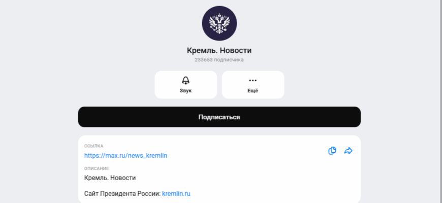 За первые сутки после запуска официальный канал Президента Российской Федерации Владимира Путина «Кремль. Новости» в мессенджере MАХ собрал более 150 тыс. подписчиков, как сообщает ТАСС.