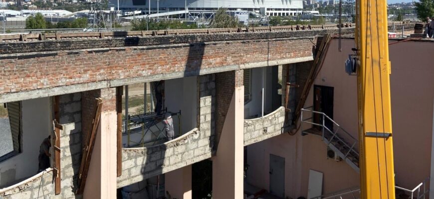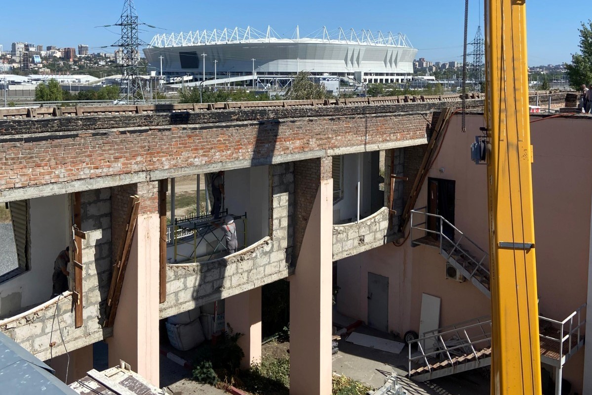 В настоящее время в блоке 2 все внутренние демонтажные работы завершены, подрядчик приступил к демонтажу фасада и установке окон.
