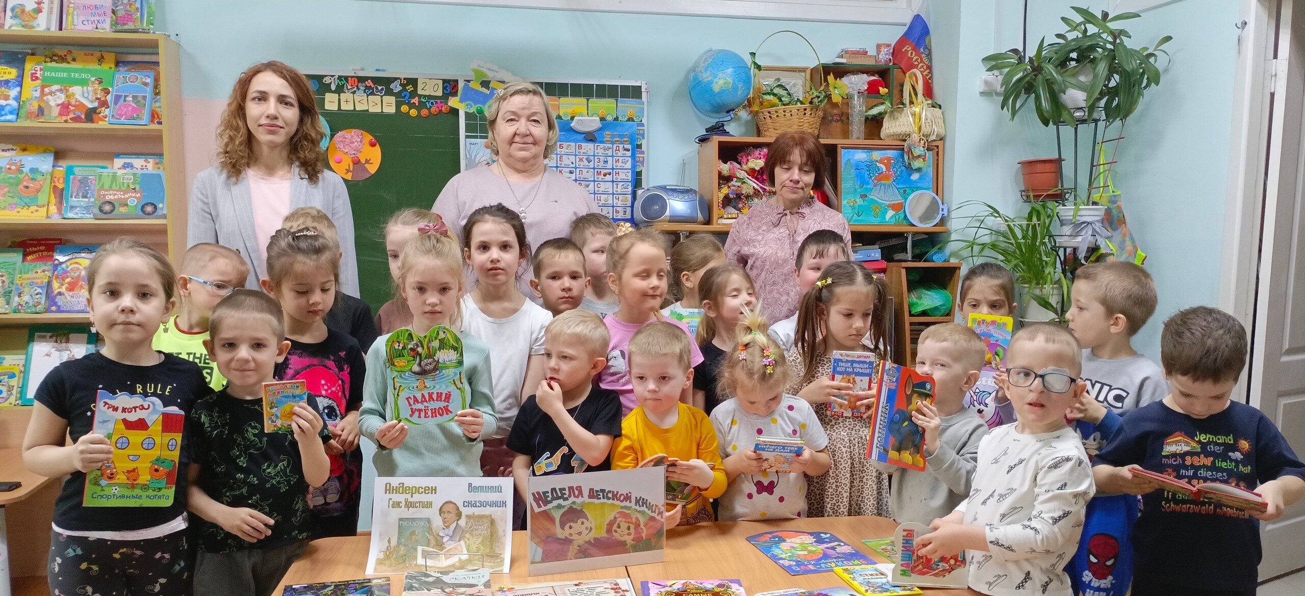 В этот день для воспитанников детского сада «Сказка» (воспитатели —Т. Б. Булаева, О. С. Ялынко, Е. А. Катаева) состоялся час классики «Нас в сказку добрую зовёт» и оформлена книжная выставка «Великий сказочник» Мы убедились, что дети очень хорошо знают и любят сказки Ганса Христиана Андерсена! Они с легкостью отвечали на вопросы викторины и разгадывали загадки. С библиотекарем они поиграли в игры «Вспомни сказку» и «Угадай героя». В продолжение часа состоялись громкое чтение и обсуждение сказки «Улитка и розовый куст». Мероприятие завершилось просмотром трогательного мультфильма, созданного по мотивам незабываемой сказки Г. X. Андерсена «Гадкий утёнок». А на прощание мы пожелали ребятам почаще заглядывать в библиотеку и открывать для себя сокровища добрых и мудрых книг!