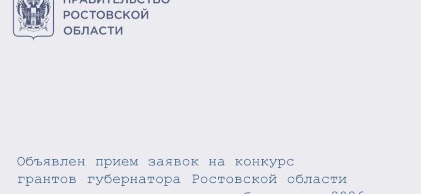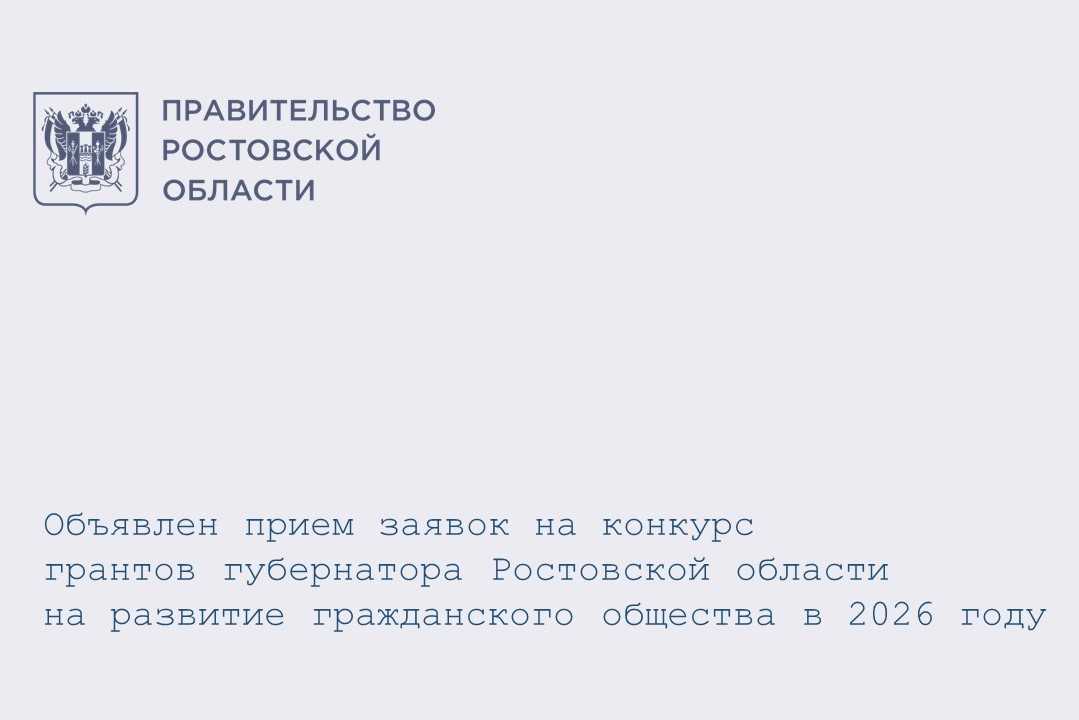 Объявлен прием заявок на конкурс грантов губернатора Ростовской области на развитие гражданского общества в 2026 году. Заявки принимаются с 10 марта по 14 апреля 2026 года включительно.