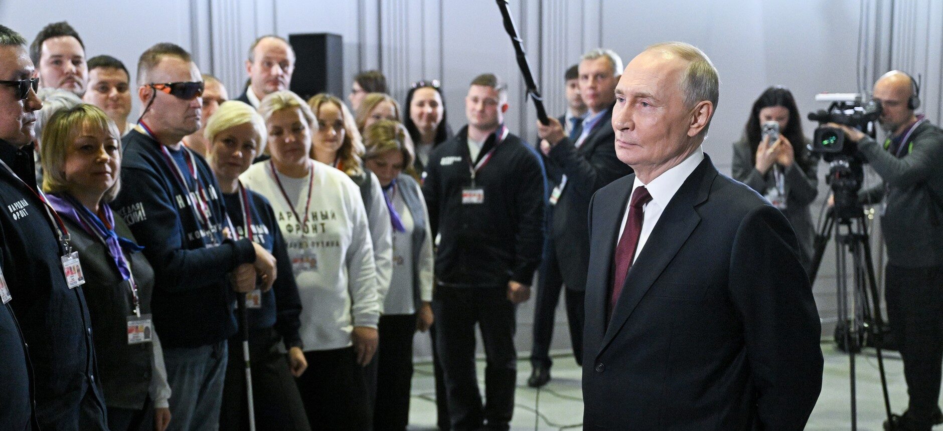 После эфира программы “Итоги года с Владимиром Путиным” Президент встретился с волонтёрами Народного фронта, работавшими в кол-центре. На встрече были ветераны СВО, представители “Молодежки” и руководители региональных исполкомов Народного фронта. Волонтеров представил руководитель Исполкома Президентского движения Михаил Кузнецов.