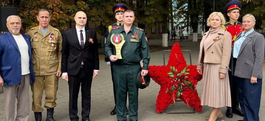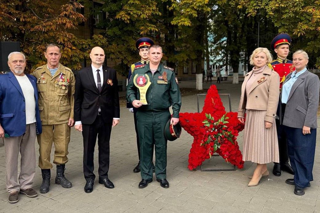 Символ эстафеты был передан Юрию Шаповалову — жителю Матвеево-Курганского района, участнику программы «Герои Дона», ветерану боевых действий специальной военной операции, награжденному медалями «За отличие в службе» I, II и III степеней, а также медалью Жукова.