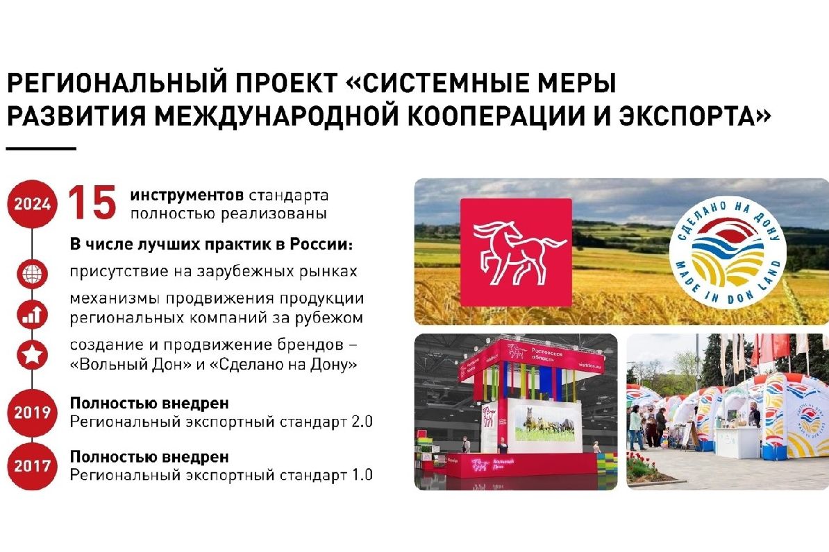 Одним из разделов региональной программы является проект, направленный на создание условий для развития экспорта продукции агропромышленного комплекса Ростовской области.