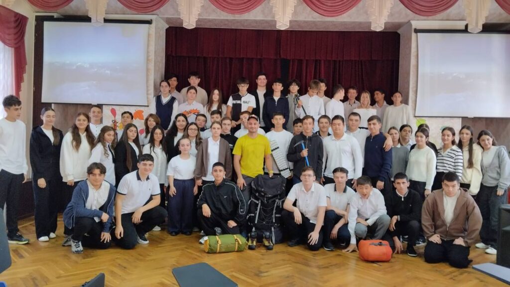 Сурен продемонстрировал фотографии и видеоматериалы своих восхождений, а также личное туристическое снаряжение. Ребята были заинтересованы, задавали много вопросов, и даже после официального окончания встречи оставались общаться, рассматривать и примерять снаряжение.