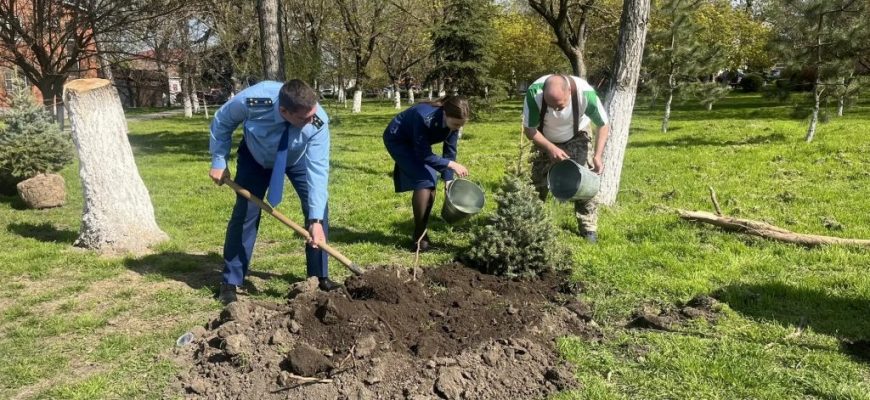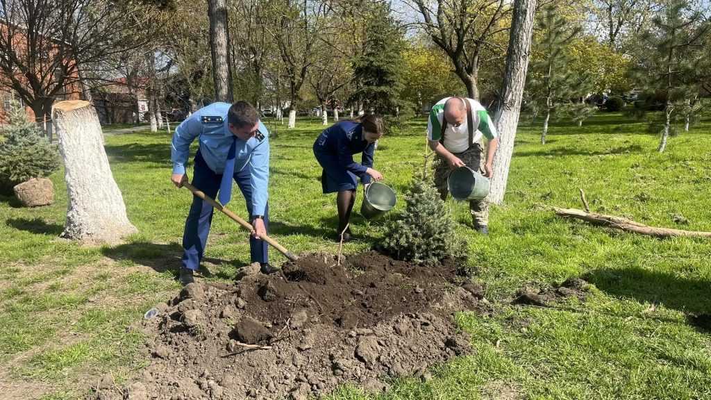 Эстафету озеленения продолжила северная аллея Центрального парка, где были высажены молодые ели. В этом мероприятии вместе с главой администрации приняли участие прокурор Мясниковского района Дмитрий Анатольевич Шлаев и помощник прокурора Тамара Юрьевна Мысливцева.