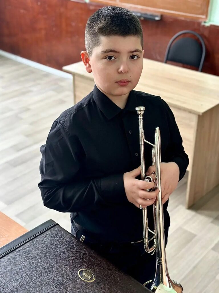Ашот Писирян (на снимке), четве­роклассник Чалтырской средней шко­лы № 2, ученик Ростовского колледжа искусств ЭДМШ, выступил на конкурсе в номинации ’’Медные духовые инстру­менты — труба”.