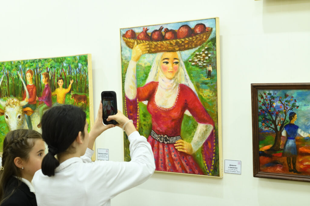 Но, все-таки, более полно образ художника раскрывают его работы. Они воспринимаются сер­дцем, тут не важно, разби­раешься ты в живописи или нет. Когда всматриваешь­ся в изображенные на хол­стах библейские, сказоч­ные сюжеты, лики прекрас­ных девушек в националь­ной одежде, в веселые детские мордашки, возни­кает какое-то магическое притяжение. Хочется вник­нуть во все, не упустить ни одной детали, понять, по­чувствовать, в чем же мо­раль, главный посыл авто­ра, какие идеи и эмоции он стремится передать через символы. Даже наши мас­титые художники Хачатур Лусегенович Гренадеров, Калуст Багдасарович Мов­сесян, высказывая свое профессиональное мнение о картинах Элины Григорь­ян, были эмоциональны, вдохновлены увиденным. В первую очередь к младше­му поколению, к пригла­шенным на презентацию ребятам, обращались в своих выступлениях насто­ятель Чалтырской церкви Сурб Амбарцум Тер Тадеос Гайбарян, художник, член Российского Союза профессиональных лите­раторов, педагог Светлана Викторовна Петровская, начальник отдела культуры Администрации Мясников­ского района Хевонд Асватурович Гайбарян.