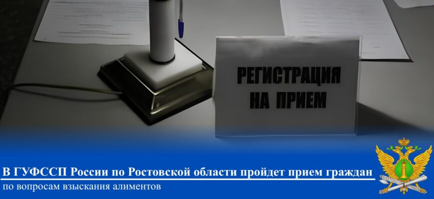 02 октября 2025 года с 14:00 до 18:00 в ГУФССП России по Ростовской области по адресу: г. Ростов-на-Дону, пер. Соборный, д. 2 «А» пройдет прием граждан по вопросам взыскания алиментов.