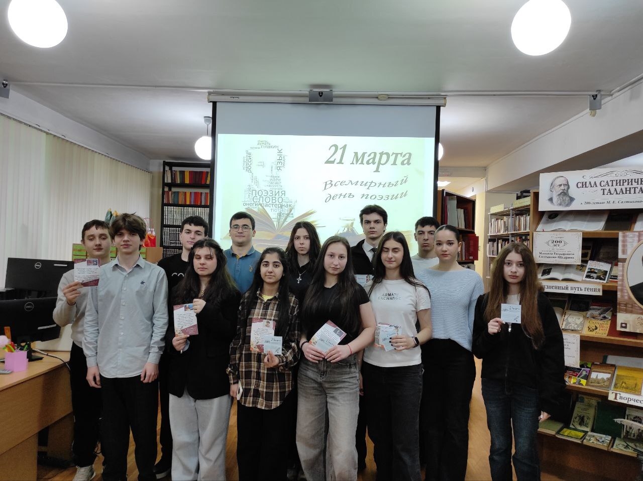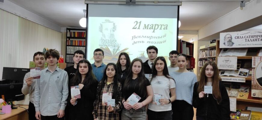 Первыми, кто принял участие в литературном рандеву «Поэзия без границ», стали ученики 10-х классов Чалтырской средней школы №1 (на снимке). Ребята узнали о судьбах известных поэтов России и наших земляков, пропроверили свои знания в интеллектуальной викторине и получили памятные призы, которые, надеемся, вдохновят их на собственные литературные открытия.