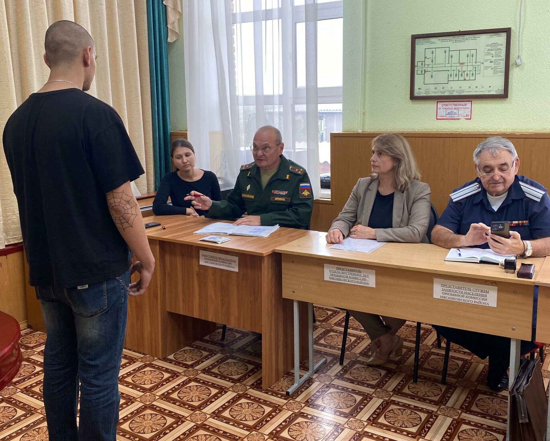 Каждый понедельник в помещении Мясниковского Дома детского творчества заседает районная призывная комиссия. В ее состав входят работники отдела образования, здравоохранения, центра занятости населения, сотрудники органов внутренних дел, отделения ДОСААФ России, представители общественных формирований. Руководит комиссией заместитель главы Администрации Мясниковского района Лариса Григорьевна Чубарова, обязанности заместителя председателя возложены на военного комиссара Неклиновского и Мясниковского районов полковника Константина Юрьевича Миронова.