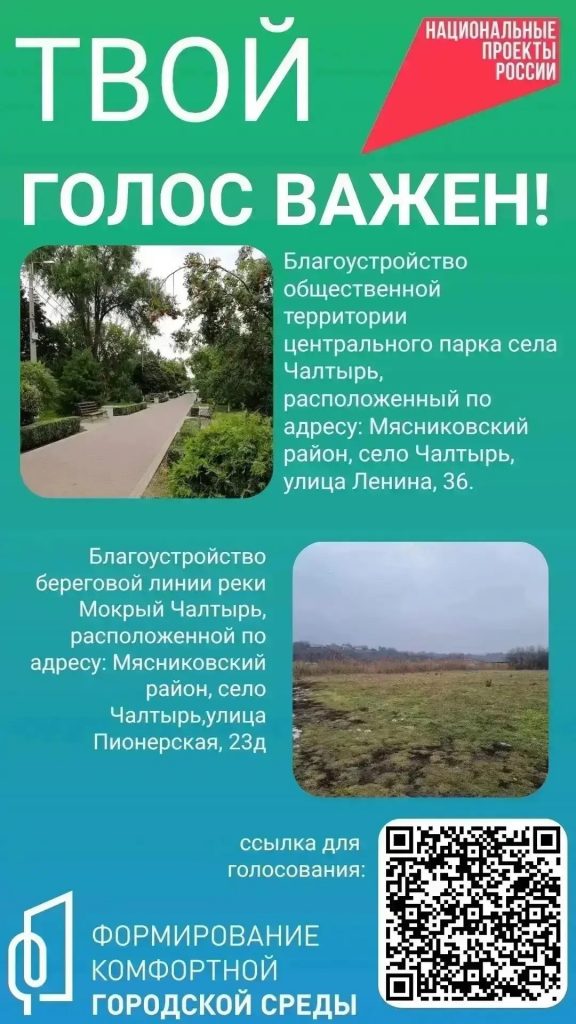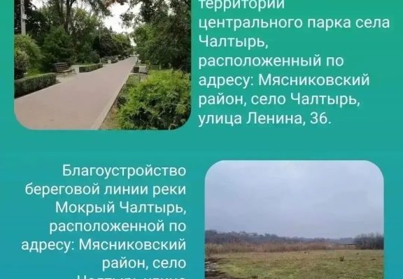 — территории центрального парка села Чалтырь, расположенного по адресу: Мясниковский район, село Чалтырь, улица Ленина, 36 — https://pos.gosuslugi.ru/lkp/fkgs/20542/169814/