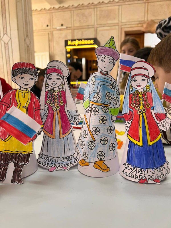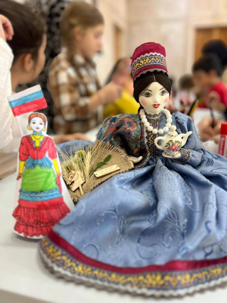 Затем ребята с огромным энтузиазмом погрузились в творческий процесс: они создавали из бумаги кукол в национальных костюмах народов России.