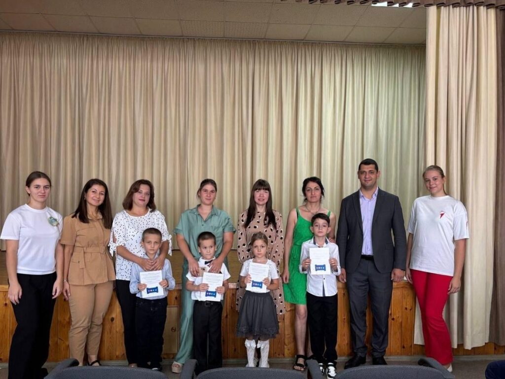 В честь Дня знаний начальник отдела образования райадминистрации А. А. Толохян, директора средних школ Мясниковского района, руководители первичных организаций ’’Движение первых” и актив муниципального волонтерского штаба #МЫВМЕСТЕ при поддержке правительства Ростовской области организовали поздравление для первоклассников — детей участников специальной военной операции.