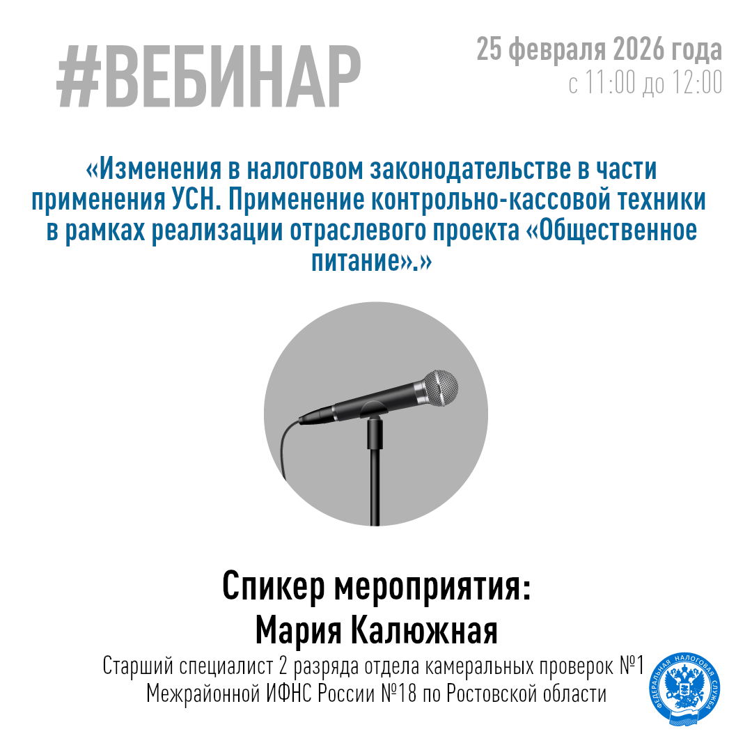 Приглашаем налогоплательщиков принять участие в вебинаре по теме «Изменения в налоговом законодательстве в части применения УСН. Развитие электронного документооборота. Применение контрольно-кассовой техники в рамках реализации отраслевого проекта «Общественное питание».»