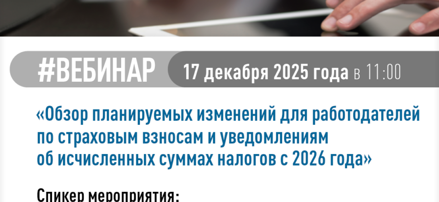 Приглашаем налогоплательщиков принять участие в вебинаре по теме «Обзор планируемых изменений для работодателей по страховым взносам и уведомлениям об исчисленных суммах налогов с 2026 года»