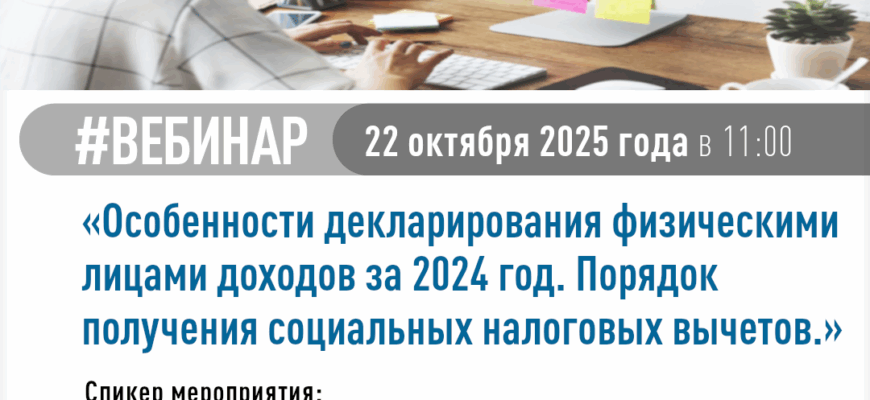 Приглашаем налогоплательщиков принять участие в вебинаре по теме «Особенности декларирования физическими лицами доходов за 2024 год. Порядок получения социальных налоговых вычетов».