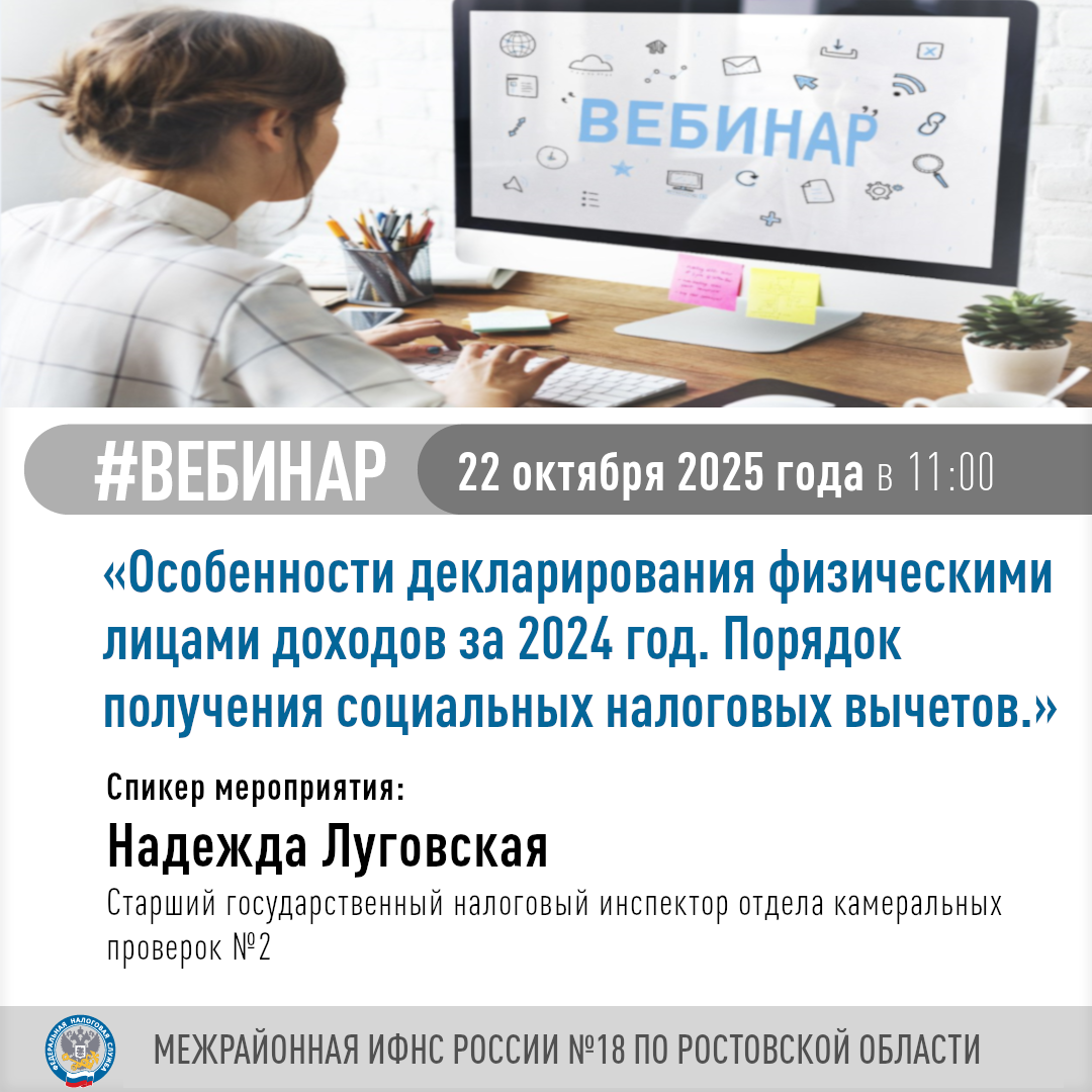 Приглашаем налогоплательщиков принять участие в вебинаре по теме «Особенности декларирования физическими лицами доходов за 2024 год. Порядок получения социальных налоговых вычетов».
