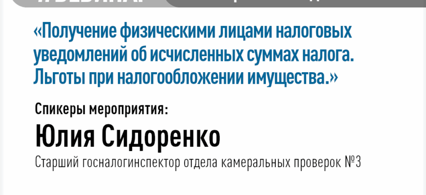 Приглашаем налогоплательщиков принять участие в вебинаре по теме «Получение физическими лицами налоговых уведомлений об исчисленных суммах налога. Льготы при налогообложении имущества».