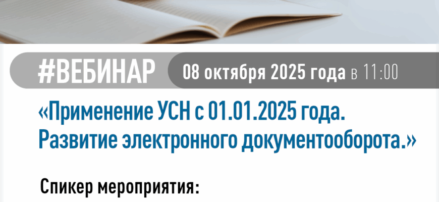 Приглашаем налогоплательщиков принять участие в вебинаре по теме «Применение УСН с 01.01.2025 года. Развитие электронного документооборота».