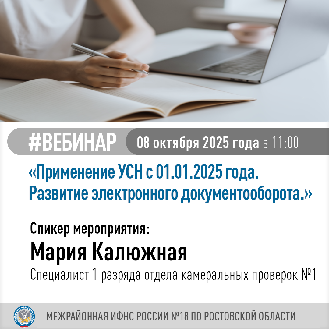 Приглашаем налогоплательщиков принять участие в вебинаре по теме «Применение УСН с 01.01.2025 года. Развитие электронного документооборота».