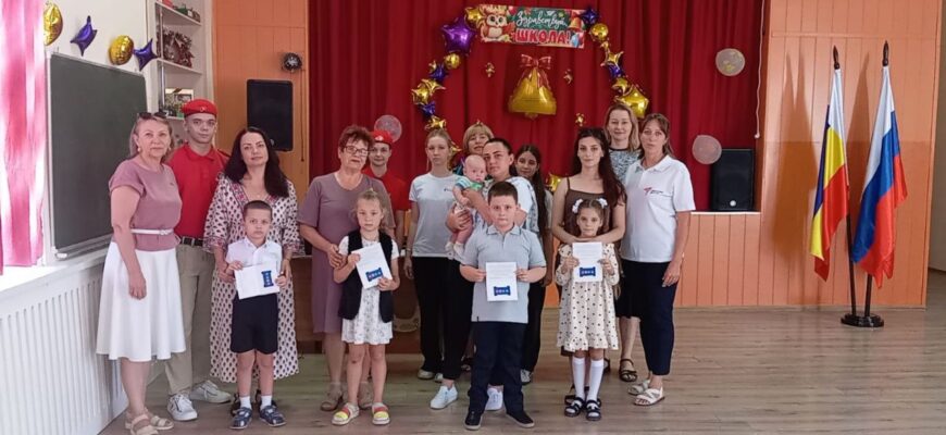Сегодня в Калининской средней школе №9 первоклассникам из семей участников СВО были вручены сертификаты от ИО Губернатора Ростовской области — Юрия Борисовича Слюсаря.