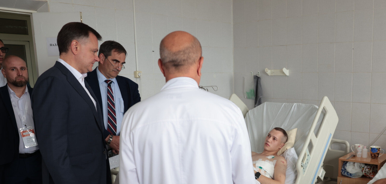 Сегодня, 10 сентября, врио губернатора Ростовской области Юрий Слюсарь посетил военнослужащих, находящихся на лечении и реабилитации в одном из ростовских госпиталей, вместе с участниками кадровой программы «Герои Дона».