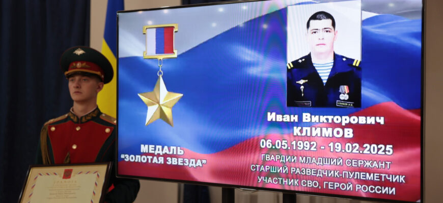Иван Климов был удостоен звания Героя России за проявленное мужество в ходе специальной военной операции. В своём последнем бою, несмотря на полученные ранения, он продолжал сражаться с противником и погиб, закрыв своим телом товарищей от осколков разорвавшегося снаряда. У Ивана остались жена и двое маленьких детей.