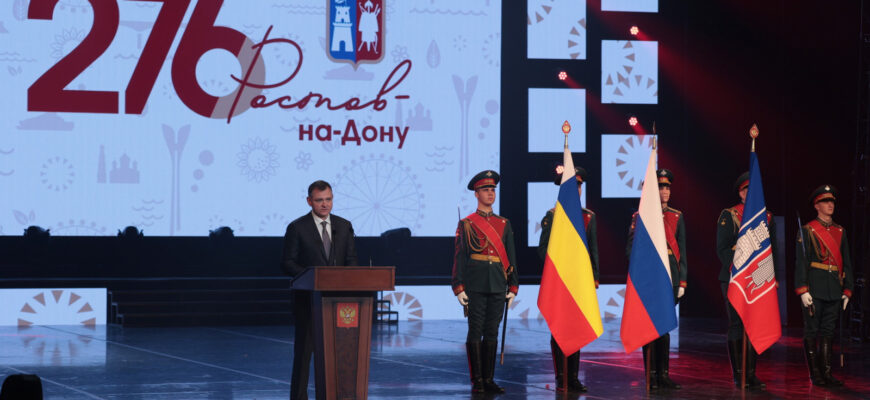 17 сентября глава донского региона Юрий Слюсарь выступил перед жителями Ростова-на-Дону в стенах Ростовского государственного музыкального театра, поздравив их с наступающим Днем города. Заслуженным труженикам донской столицы он вручил областные награды и поощрения.